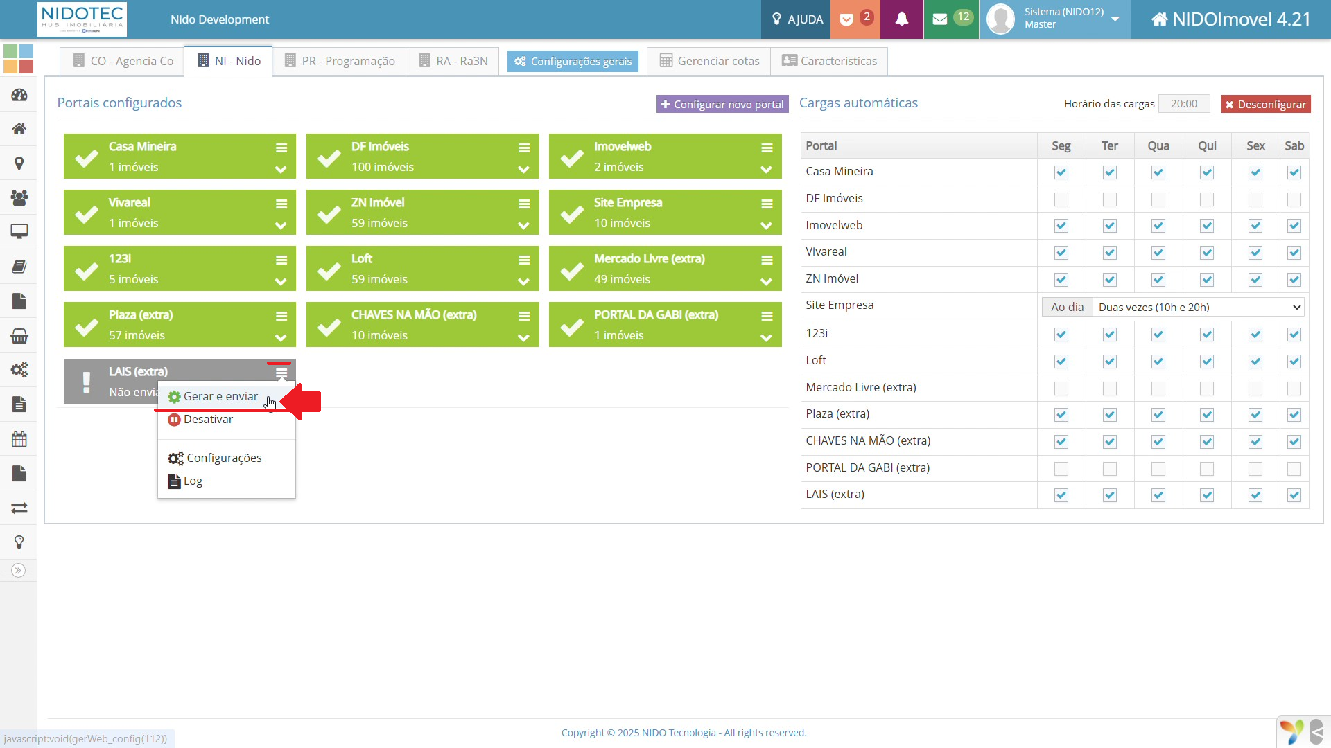 6 – Clique em AÇÕES ( 3 traços ) > GERAR E ENVIAR