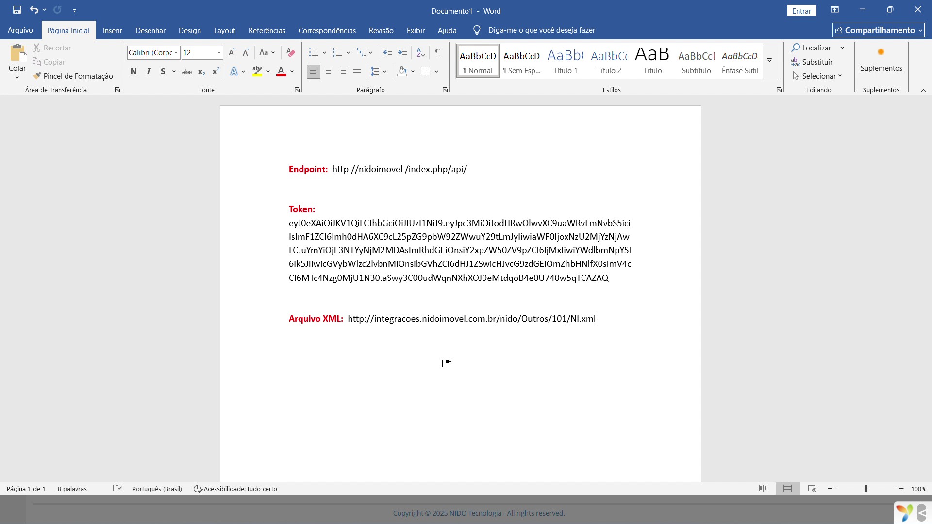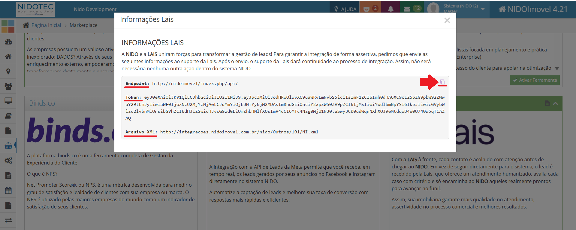 11 – Clique no ícone copiar, para copiar o ENDPOINT, TOKEN e ARQUIVO XML
