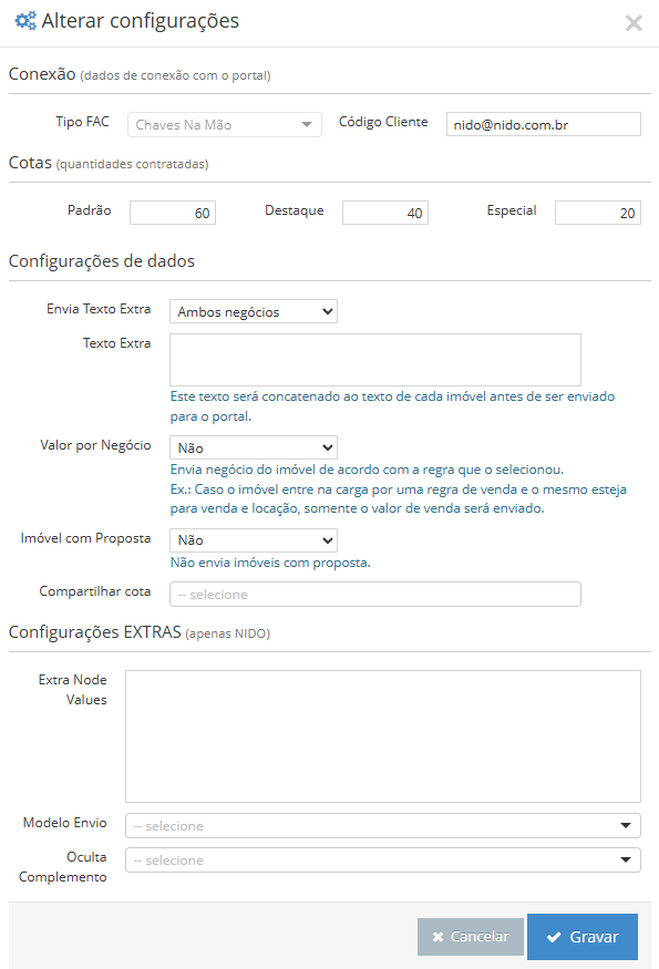 É importante verificar com o cliente se o portal solicitou o envio do arquivo XML no formato Vivareal (vrSync).