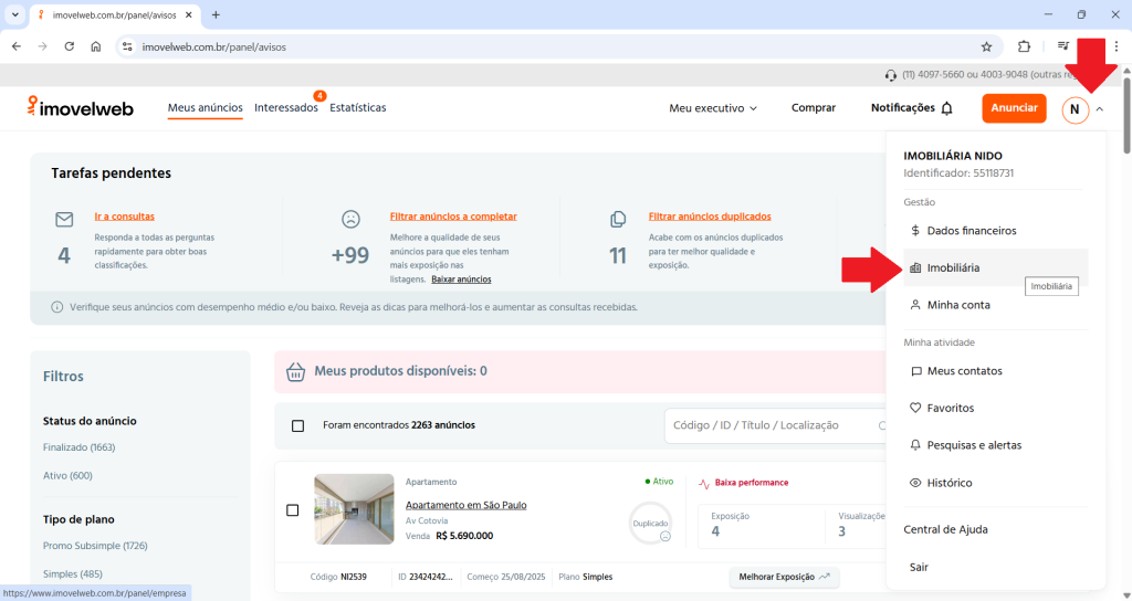 PASSO 1 – Acesse o PAINEL da ImóvelWeb