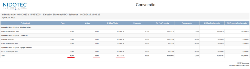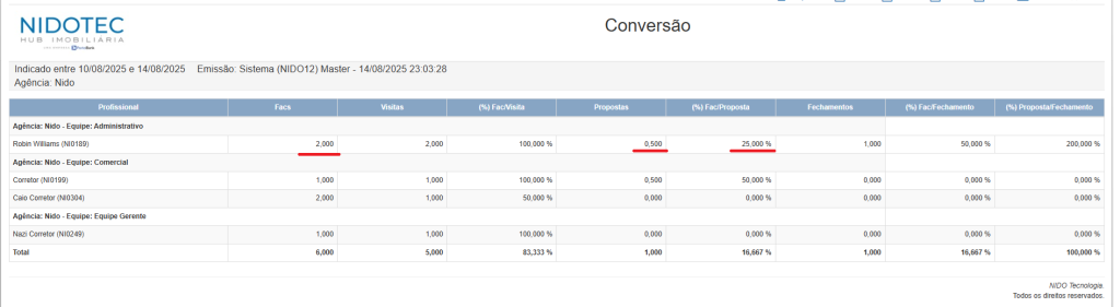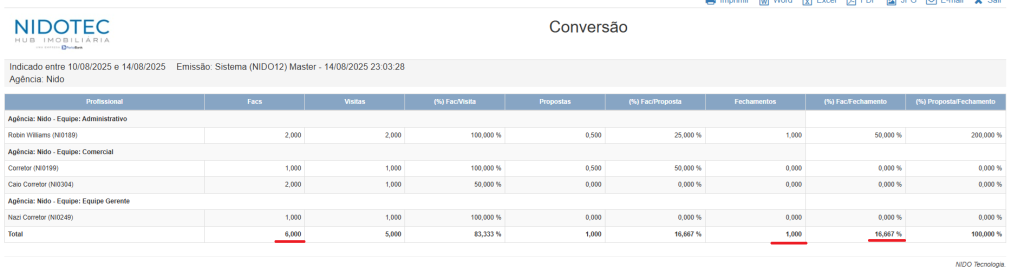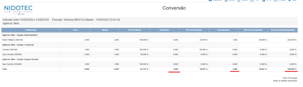 (soma dos fechamentos) / (soma das propostas) * 100